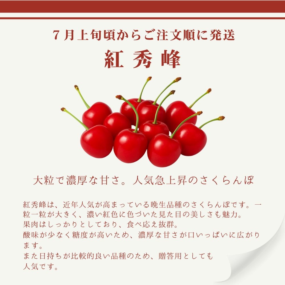 | 品種 | 紅秀峰(さくらんぼ) |